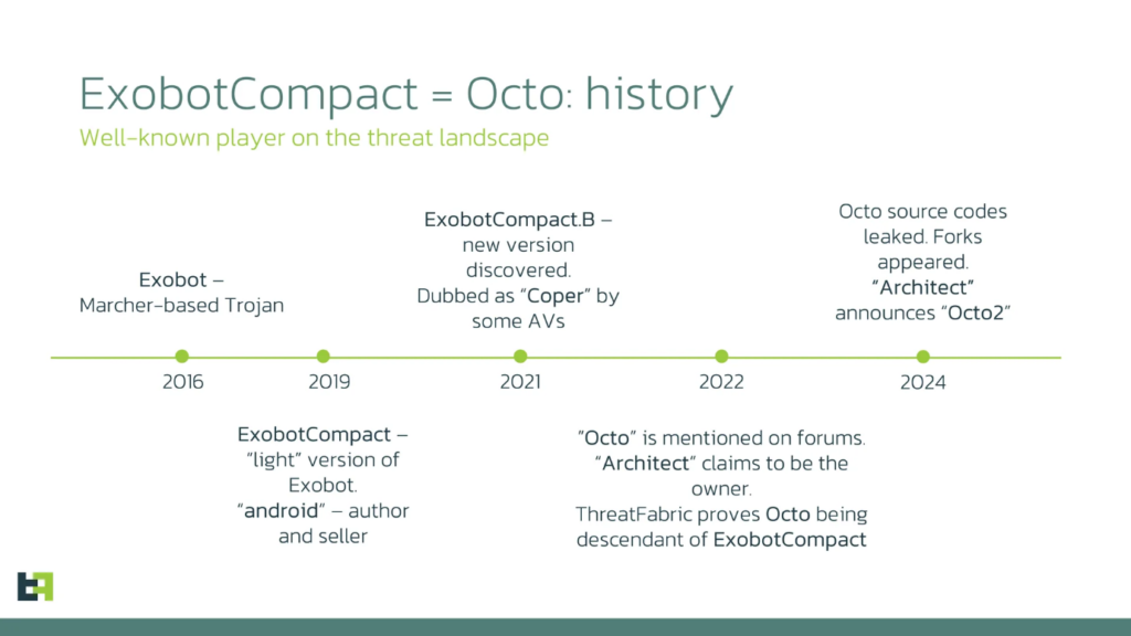 The introduction of a new variant named “Octo2” from the Octo malware family, formerly recognized as “ExobotCompact,” has marked a notable evolution in the cybersecurity landscape. This banking trojan, which primarily stems from the ‘Exobot’ lineage, was first identified in 2016 and has since undergone considerable evolution.