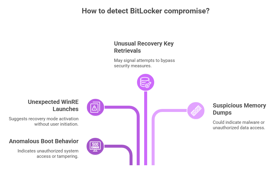 Detecting these issues can be tricky. Look for anomalous boot behavior, unexpected WinRE launches, and local processes trying to access BitLocker management interfaces. Audit logs that show unusual recovery key retrievals or repeated recovery attempts are red flags.